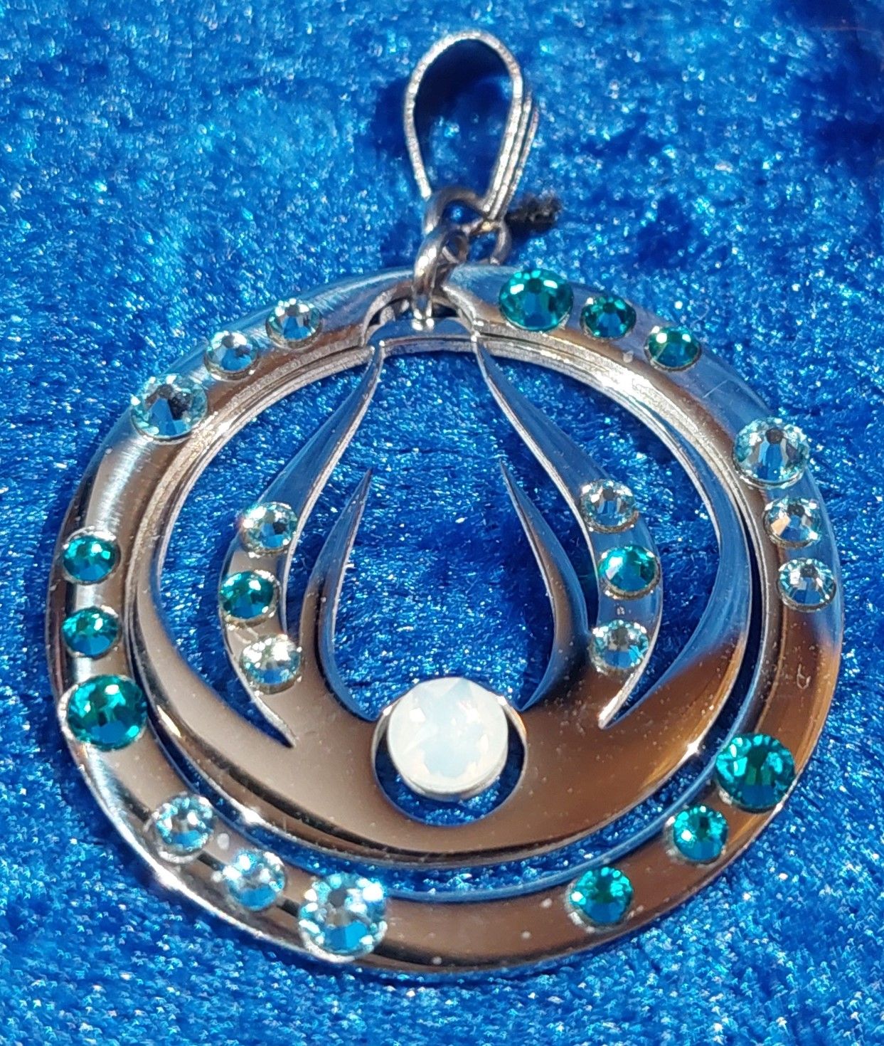 AWAKE - Energetisierter Schmuck mit Swarovski-Kristallen - Edelstahl poliert, 28mm, eingefasst in eine Umrandung mattiert (beweglich)