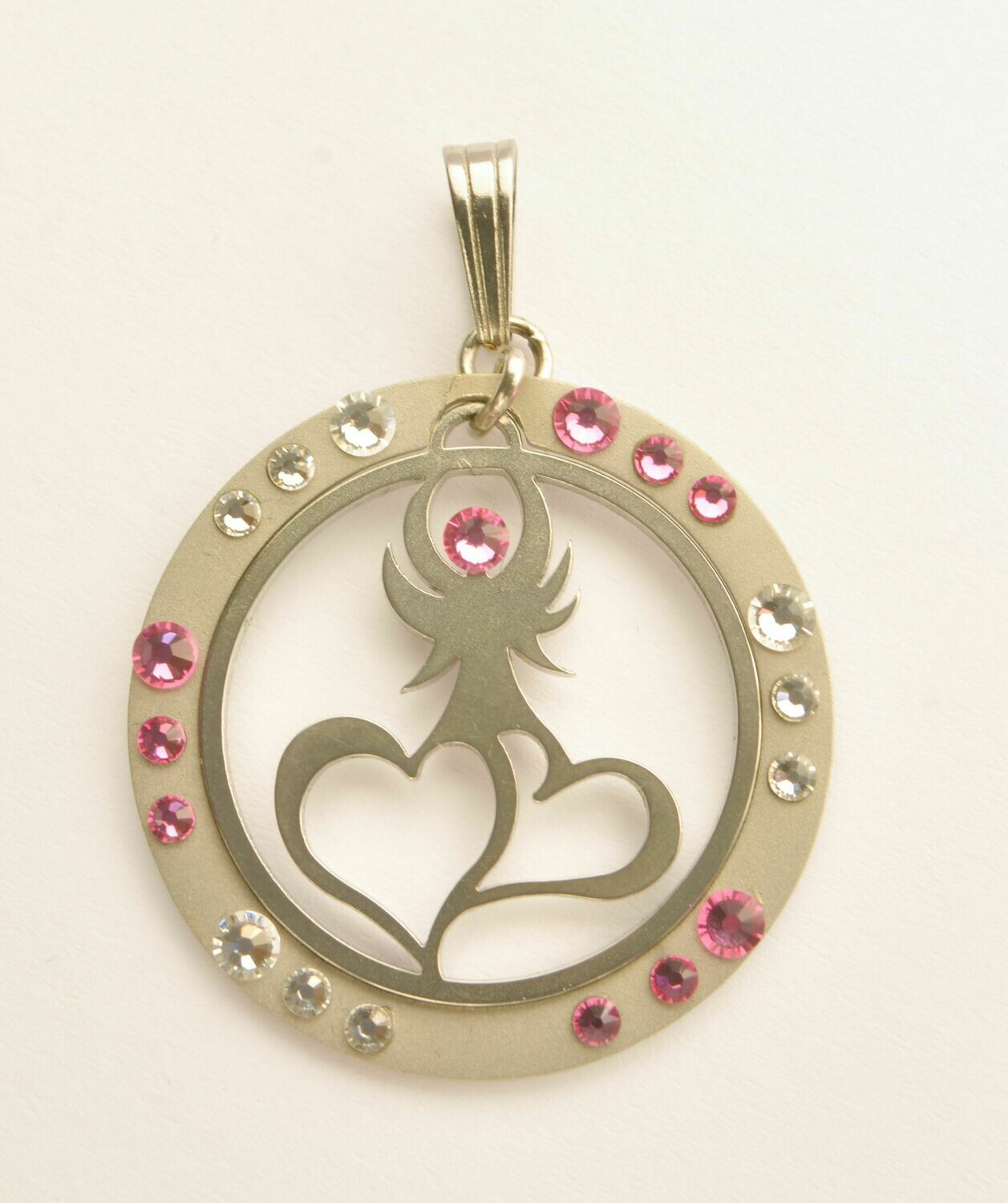 Energetisierter Schmuck mit Swarovski-Kristallen - Edelstahl poliert, 28mm, eingefasst in eine Umrandung mattiert (beweglich)
